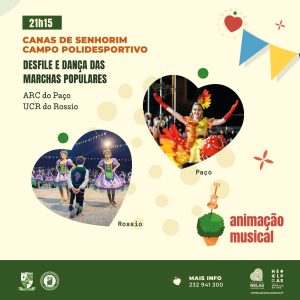 Em 𝗖𝗮𝗻𝗮𝘀 𝗱𝗲 𝗦𝗲𝗻𝗵𝗼𝗿𝗶𝗺, as 𝗔𝘀𝘀𝗼𝗰𝗶𝗮𝗰̧𝗼̃𝗲𝘀 ARCPaço p𝗮𝗰̧𝗼 𝗲 União Cultural e Recreativa do Rossio 𝗥𝗼𝘀𝘀𝗶𝗼 trazem cor às ruas da Vila, reunindo-se no Campo Polidesportivo, proporcionando um espetáculo animado e colorido. A noite prossegue com animação musical, pelo que não vai faltar muito convívio e alegria.