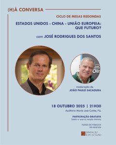José Rodrigues dos Santos será o primeiro de três convidados neste Ciclo de Mesas Redondas. O jornalista e escritor, cujas últimas obras abordam a questão das eleições dos Estados Unidos e a verdade que se vive na China, e de como estão a construir uma Nova Rota da Seda, endividando países “que lhes ficam no bolso”, submissos, e minando o Ocidente pouco a pouco, como será, talvez, a intenção de Putin, estará à conversa com João Paulo Sacadura no próximo sábado no Auditório Maria José Cunha.