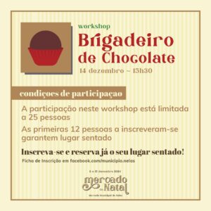 Workshop de Culinária, “Brigadeiros de Chocolate” dia 14 de dezembro às 15h30