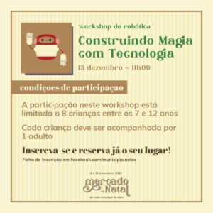 – A participação neste workshop está limitada a 8 CRIANÇAS entre os 7 e 12 anos.