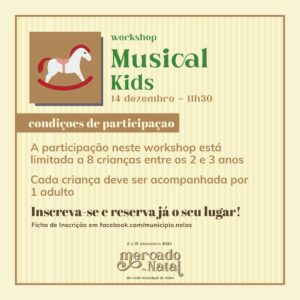– A participação neste workshop está limitada a 8 CRIANÇAS com 2 e 3 anos.