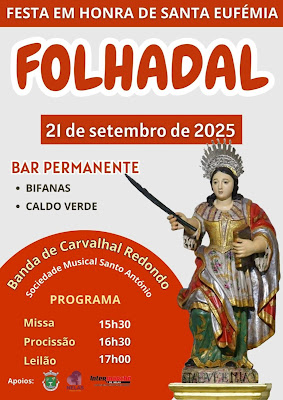 FolhadalNo dia 21 de setembro de 2025 realiza-se no Folhadal a Festa em Honra de Santa Eufémia. Missa, seguida de procissão às 15h30. Bar permanente.