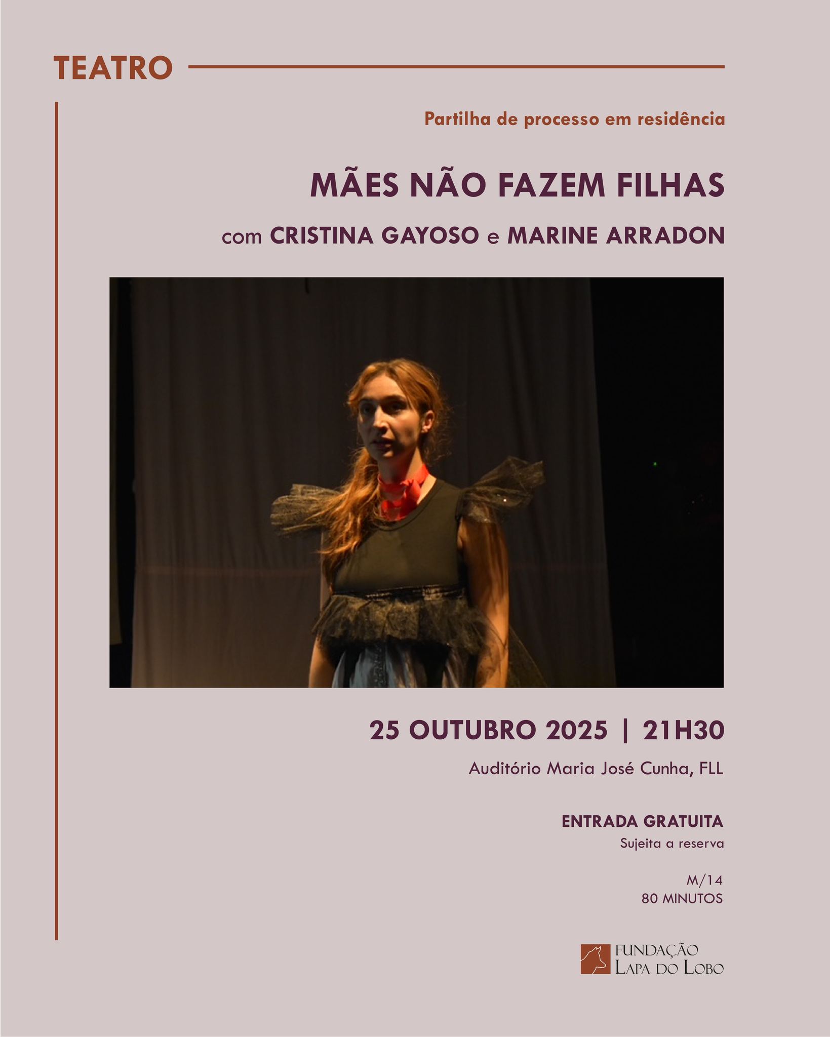"Mães não fazem filhas" será apresentado este sábado, após duas semanas de residência artística na Fundação Lapa do Lobo. Este espetáculo nasceu da vontade de refletir sobre a relação entre mãe e filha, abordando o luto — simbólico e literal — que a atravessa e será seguido de uma conversa com as artistas Cristina Gayoso […]