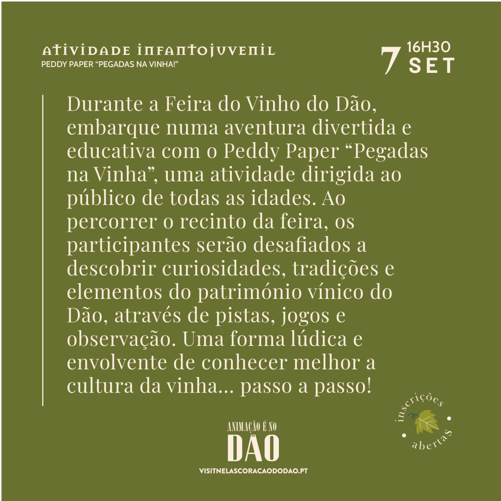 - 5 Setembro – 9h30 às 12h30 . Vindima com visita à Adega e Prova de Vinhos