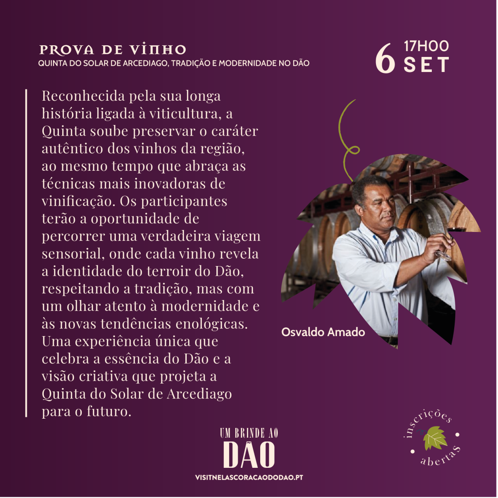 - 5 Setembro – 12h30 às 15h30. Visita à Adega com Almoço Regional