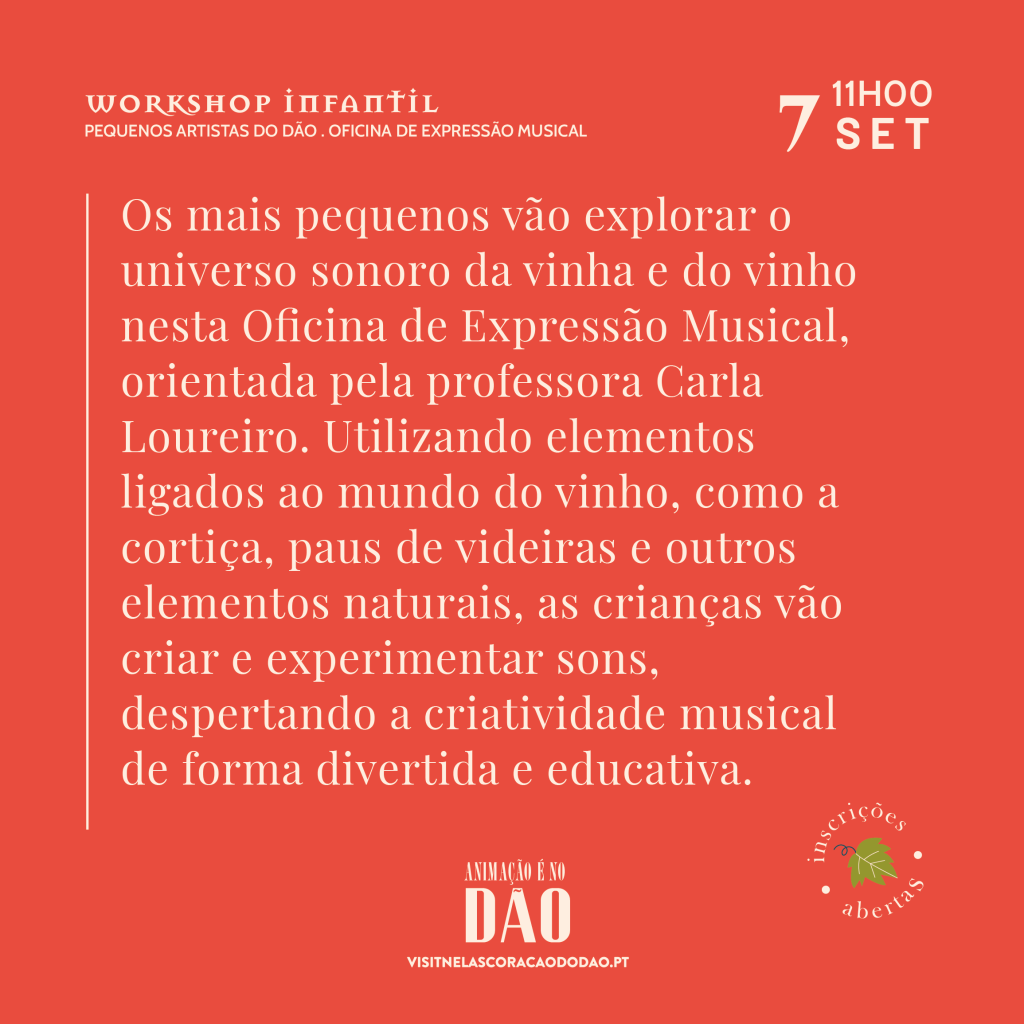 - 5 Setembro – 10h00 às 11h30 e 14h00 às 16h00