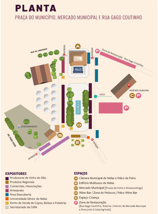 A Feira do Vinho do Dão é um certame que conta com a dezenas de Produtores de Vinho do Dão que expõem os seus produtos numa área de exposição constituída por stands dispostos frente à Câmara Municipal de Nelas, no centro da Vila. Além do Espaço de Exposição dos Produtores, a Feira conta ainda com exposições de Artesanato e Produtos Regionais, e uma área dedicada a Máquinas e Equipamento do Sector Vitivinícola. Em termos lúdicos, o recinto com um Espaço Formação / Showcooking, onde decorrem provas de vinho, sessões de cozinha ao vivo para adultos e cozinha infantil, um Espaço Criança e a Praça de Alimentação, situada no Mercado Municipal.