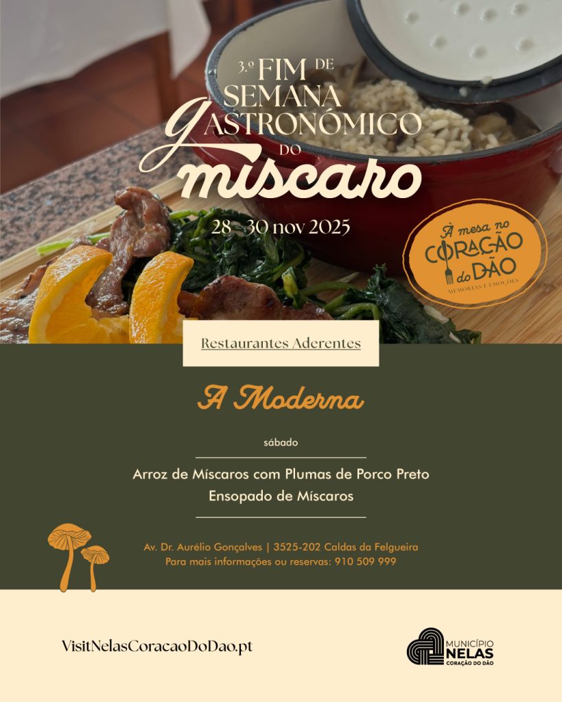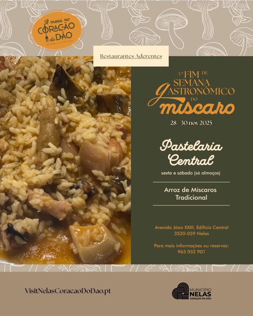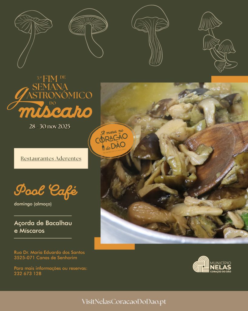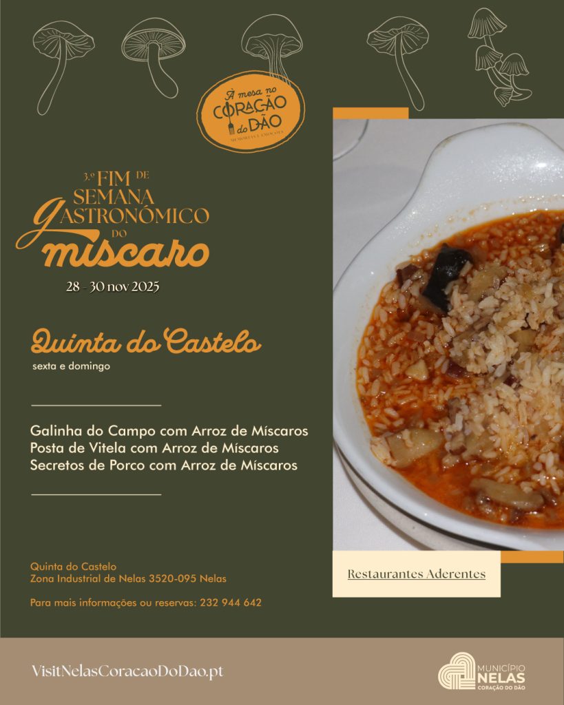 O Município de Nelas volta a celebrar os sabores e tradições da região com mais uma edição do Fim de Semana Gastronómico do Míscaro, que decorre de 28 a 30 de novembro, integrado no projeto “À Mesa no Coração do Dão – Gastronomia de Memórias e Emoções”.