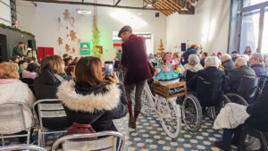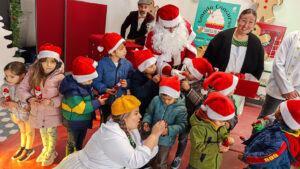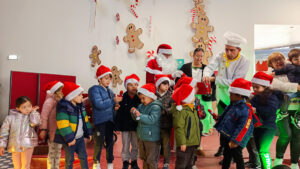 Ontem e hoje de manhã, o 𝗠𝗲𝗿𝗰𝗮𝗱𝗼 𝗱𝗲 𝗡𝗮𝘁𝗮𝗹 voltou a abrir portas e a acolher cerca de 𝟯𝟲𝟬 𝗮𝗹𝘂𝗻𝗼𝘀 𝗱𝗼 𝗝𝗮𝗿𝗱𝗶𝗺 𝗱𝗲 𝗜𝗻𝗳𝗮̂𝗻𝗰𝗶𝗮 𝗱𝗲 𝗡𝗲𝗹𝗮𝘀, 𝘁𝘂𝗿𝗺𝗮𝘀 𝗱𝗼 𝟭º, 𝟮º 𝗲 𝟯º 𝗮𝗻𝗼𝘀 𝗱𝗼 𝗖𝗲𝗻𝘁𝗿𝗼 𝗘𝘀𝗰𝗼𝗹𝗮𝗿 𝗱𝗲 𝗡𝗲𝗹𝗮𝘀, 𝗝𝗮𝗿𝗱𝗶𝗺 𝗱𝗲 𝗜𝗻𝗳𝗮̂𝗻𝗰𝗶𝗮 𝗱𝗲 𝗦𝗮𝗻𝘁𝗮𝗿, 1º e 2º anos da EB da Feira de Canas de Senhorim, , 2º e 3º e º ano do Fojo de Canas de Senhorim, e 𝟳𝟱 𝘂𝘁𝗲𝗻𝘁𝗲𝘀 do Centro S. Paroquial Canas, Fundação Lopes da Fonseca da Lapa do Lobo, e Chão do Grou que num ambiente de emoção, alegria e boa disposição, assistiram ao divertido espetáculo “𝗢𝘀 𝗜𝗻𝗴𝗿𝗲𝗱𝗶𝗲𝗻𝘁𝗲𝘀 𝗦𝗲𝗰𝗿𝗲𝘁𝗼𝘀!”, preparado e encenado pela Equipa de Animadores do Município de Nelas. Registaram-se momentos de proximidade que promoveram a criação de laços de afetividade e partilha intergeracional entre Escolas, Lares e Instituições Particulares de Solidariedade Social (IPSS) do Concelho. E para tornar esta visita ainda mais especial, foram ainda distribuídos Pais Natal de chocolate aos alunos e um docinho especial aos utentes das IPSS.